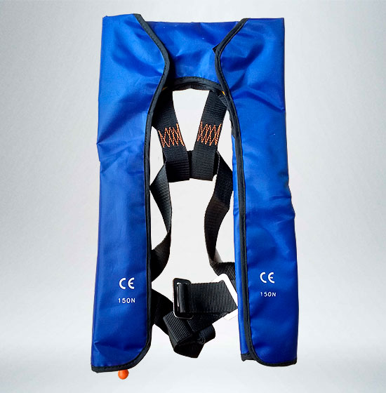 Este chaleco tiene un tubo plástico asociado para la caja de aire que recarga manualmente, rápido fuerte con la manija para un funcionamiento manual confiable, las correas ajustables se adaptaron a la varia talla de portadores, flotabilidad 150N, proporciona a toda la seguridad de un dispositivo personal estándar del flotador. Custodia de la flotabilidad 24 horas en agua dulce.